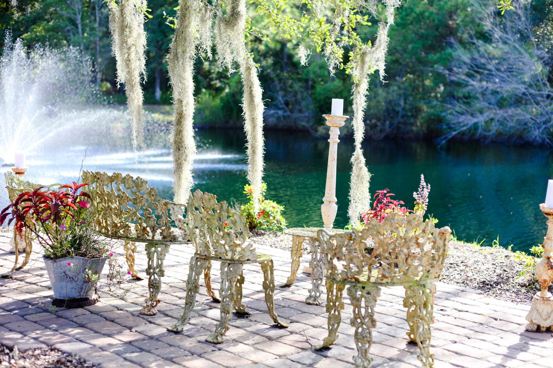 4,000 Sq Ft Climate Controlled Reception Hall. 20' Cypress Ceilings with Wrought Iron Chandeliers, Floor to Ceiling Windows, Views overlooking large stone 3 tiered lit fountain and lighted pond Fountain, Luxury Restrooms, Light Wheel with Custom Colors, Drinking Fountain, USB Ports, Multiple Band Stations with Plenty of Outlets, Surround Sound System, Wifi, Catering Area (just outside building), 10x20 catering tent, 13 round banquet tables, 3 six foot rectangular tables